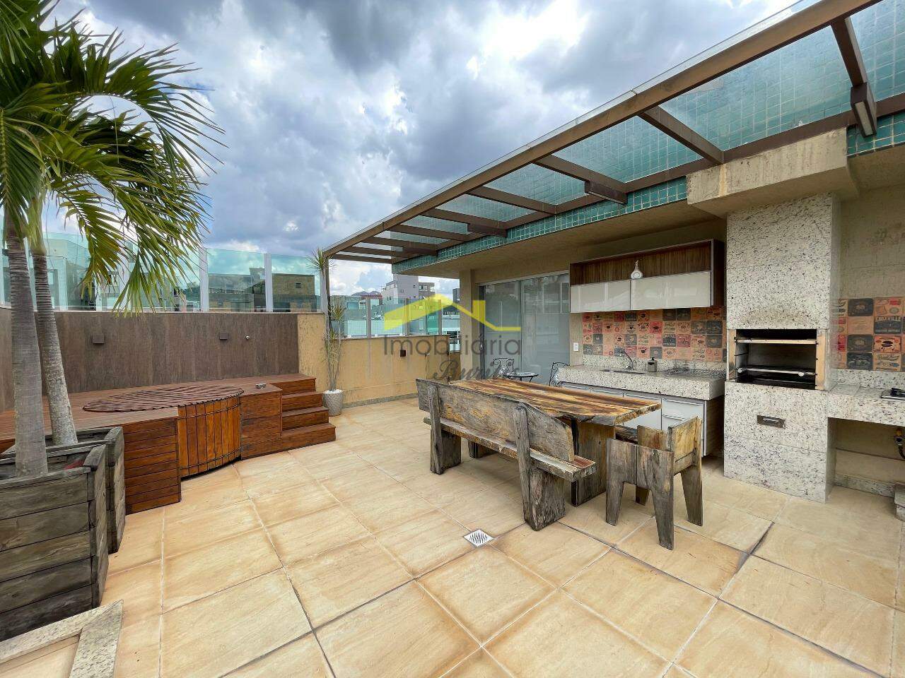 No segundo pavimento, há uma sala de televisão espaçosa, uma sala de jantar e um lavabo. A área externa é um verdadeiro destaque, com espaço gourmet montado e uma jacuzzi cercada por um deck de madeira, ideal para momentos de lazer e descontração.
