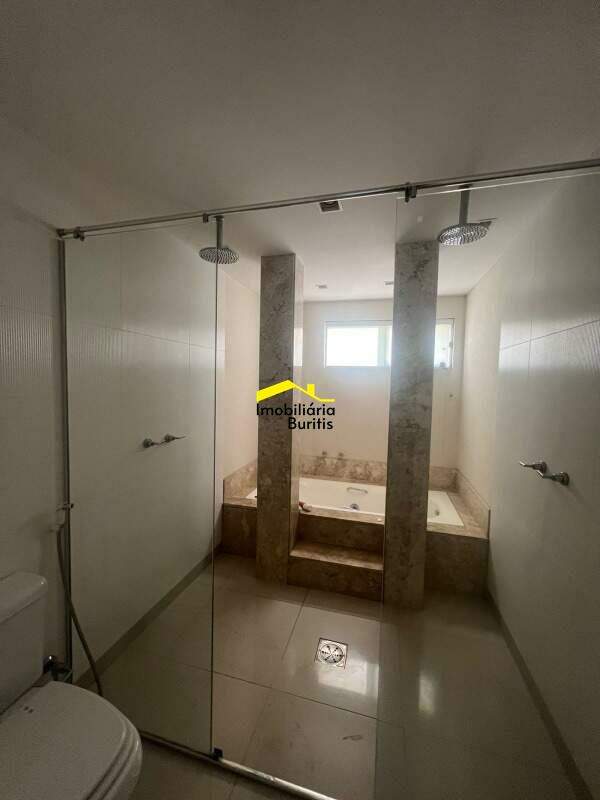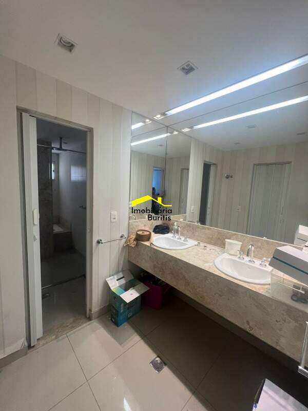 banheiro social com blindex armarios e espelho rouparia no corredor