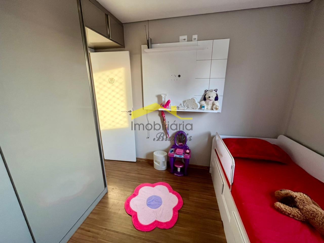 O apartamento dispõe de três quartos, sendo dois no piso inferior e um no piso superior, com destaque para as duas suítes aconchegantes, ambas equipadas com armários planejados, que unem organização e praticidade ao dia a dia.