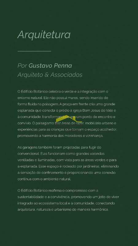 Nota: O Botânico está em fase de pré-lançamento e sujeito a alterações conforme o memorial descritivo final.
