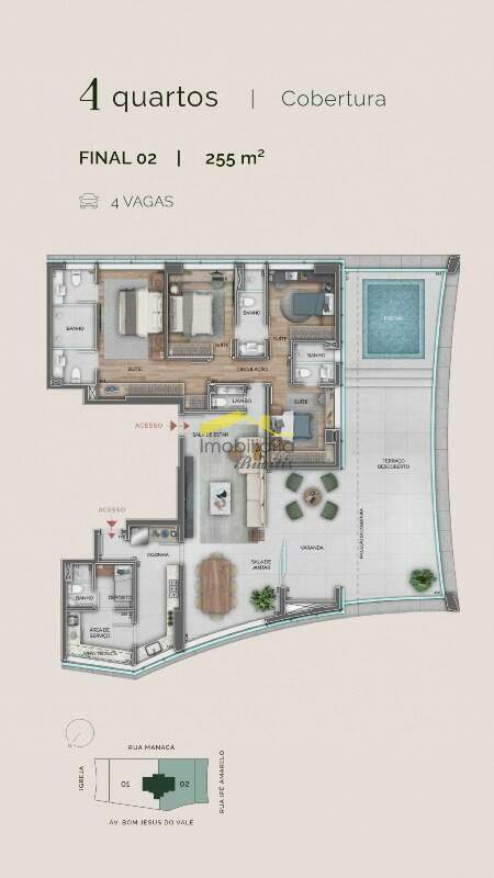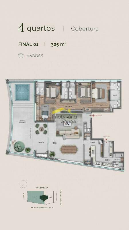 - Amenidades Premium: Desfrute de salão de festas, cozinha gourmet, churrasqueira, espaço kids, playground ao ar livre, piscinas adulto e infantil, sauna, academia, academia ao ar livre, quadra infantil e espaço de coworking.