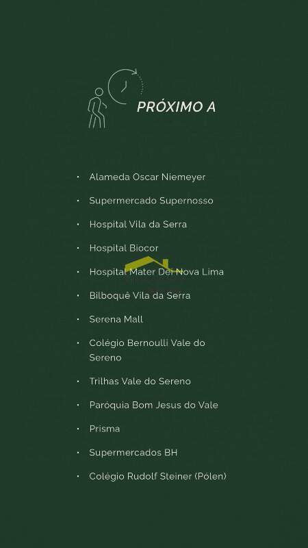 - Conveniência Incomparável: Adote o conceito de “bairro de 15 minutos”, com supermercados (Supernosso, BH), hospitais (Vila da Serra, Biocor, Mater Dei), escolas (Bernoulli, Rudolf Steiner) e pontos de lazer como o Serena Mall, todos a poucos passos.