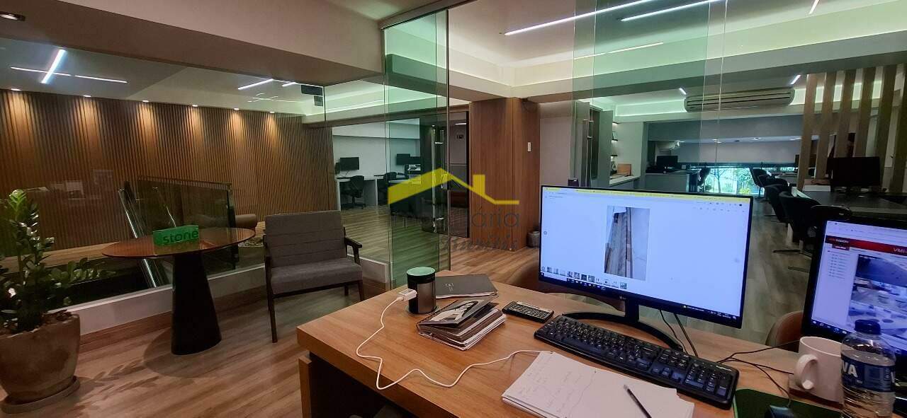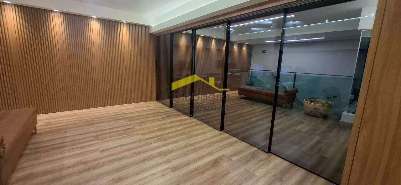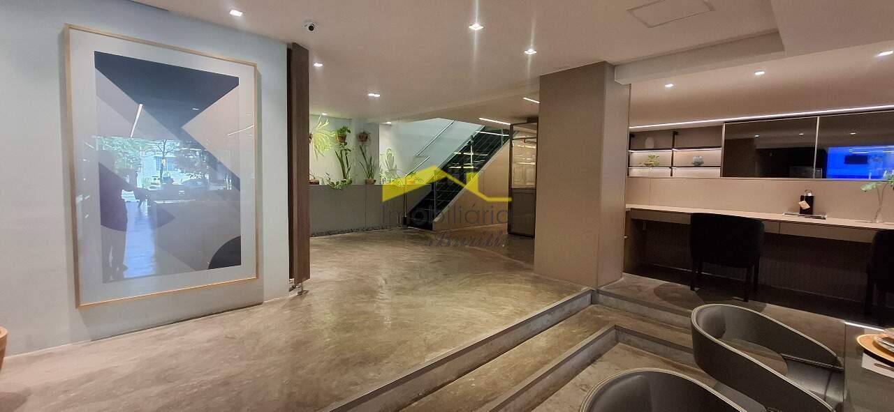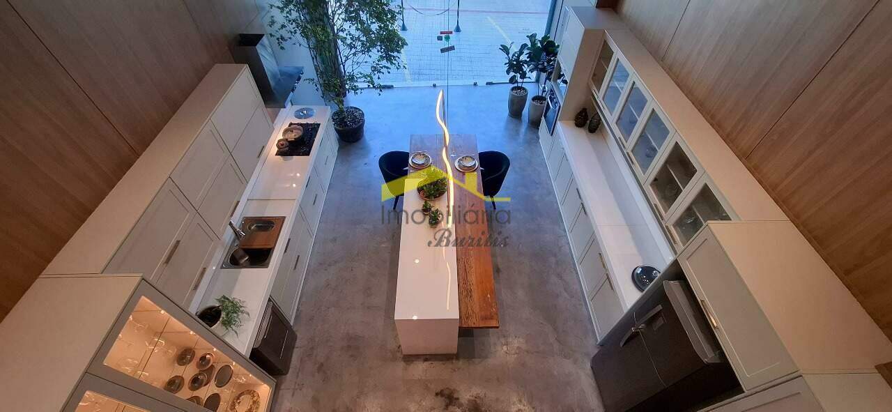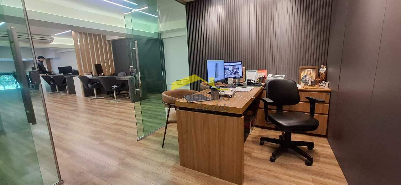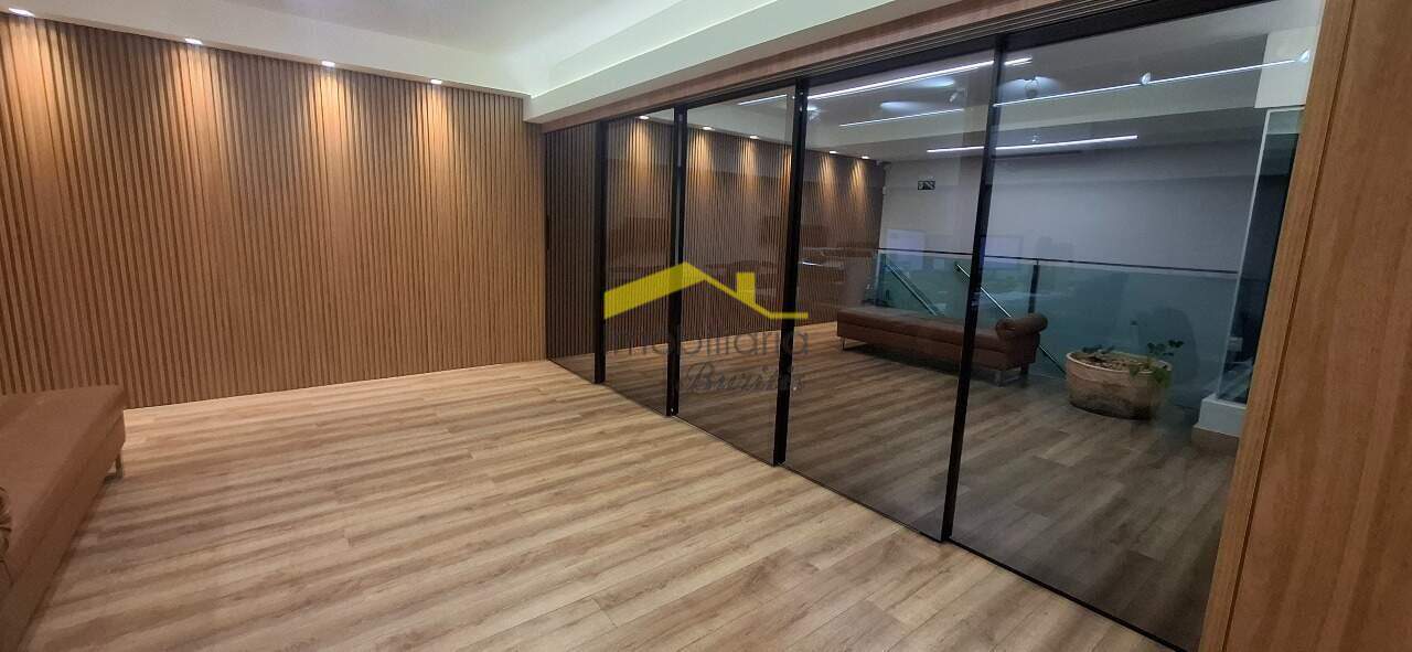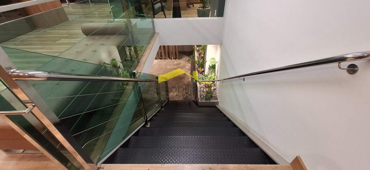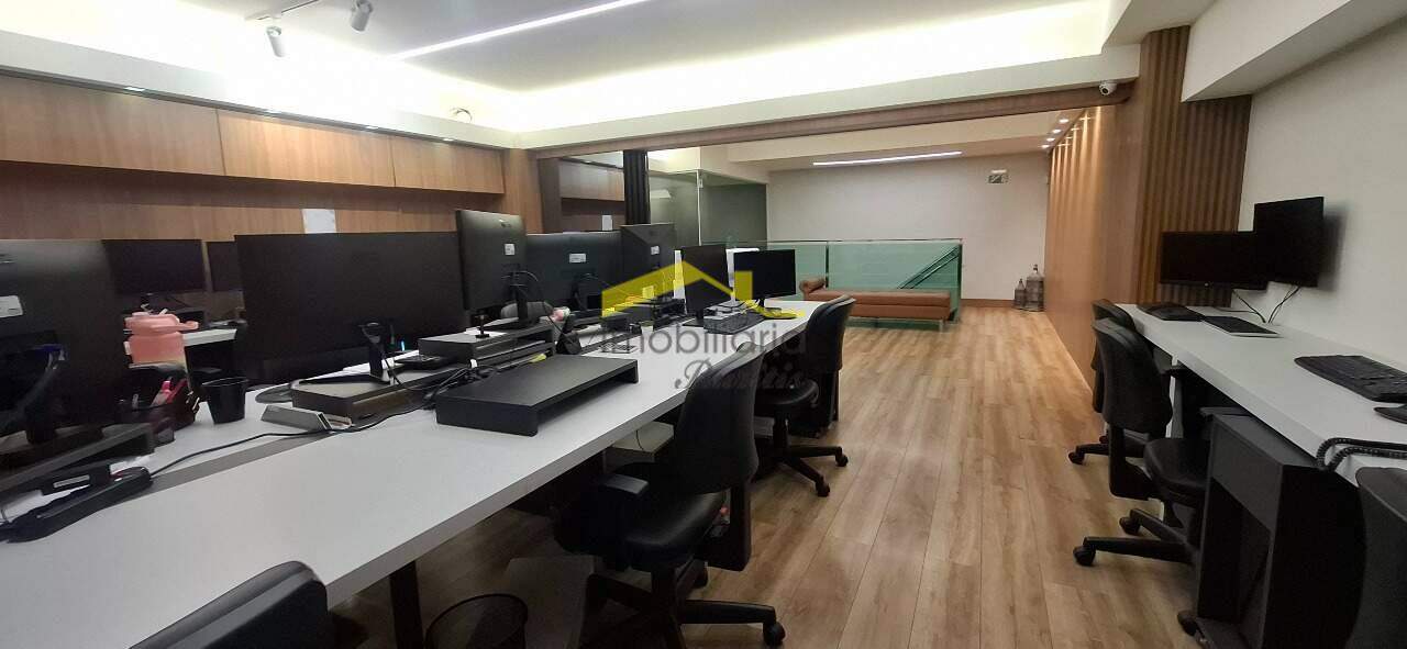 Loja 2º Piso: Escadaria de ferro com parapeito de vidro e corrimão de alumínio, mezanino com 122,00m² com piso em laminado de madeira, mezanino transformado em escritório, teto com rebaixamento em gesso, luminárias e ar condicionado, duas vagas rotativas na frente da loja.
