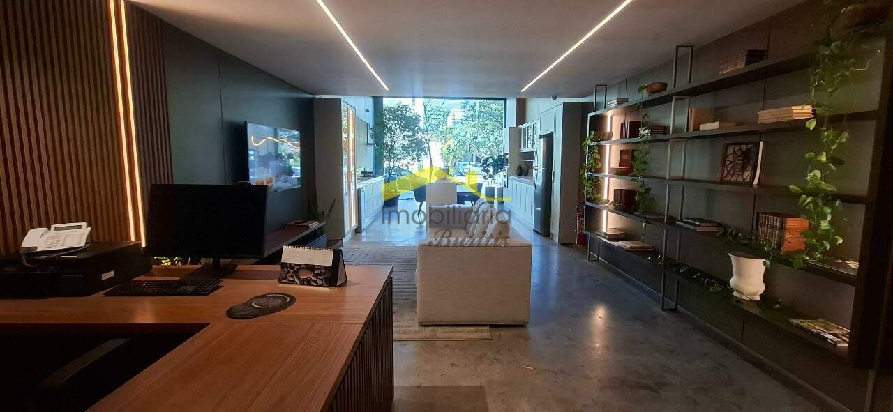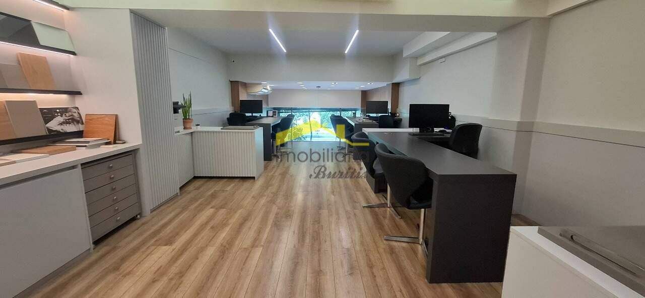 Sendo 1º Piso com 156,00m² com piso em marmorito, rebaixamento em gesso, iluminação planejada, ar condicionado, 02 banheiros piso em granito, a entrada da loja com porta de vidro, jardim.