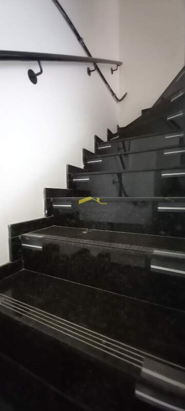 Escada com acesso ao segundo andar de piso em mármore preto: