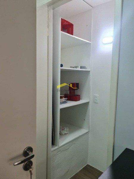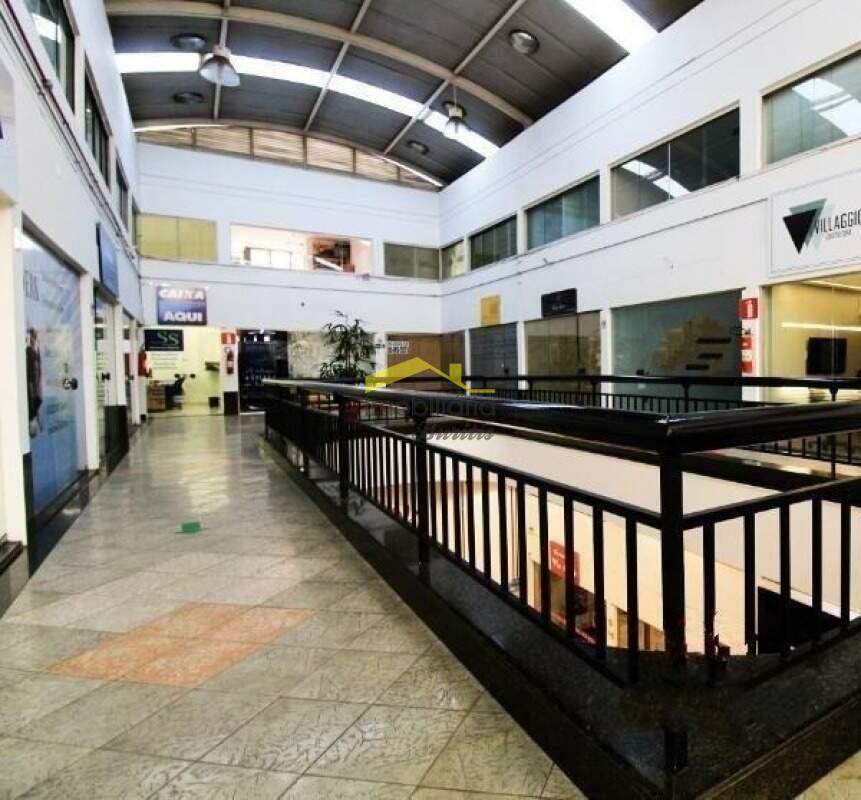 Aproximadamente 30m², fechamento em blindex, escada de ferro, mezanino com 22m², janelas em blindex, banheiro com armário.