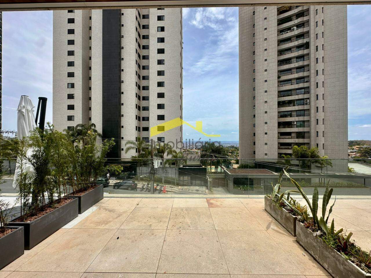 Loja com 157m² de área interna e uma varanda privativa, proporcionando amplitude e integração com o ambiente externo.