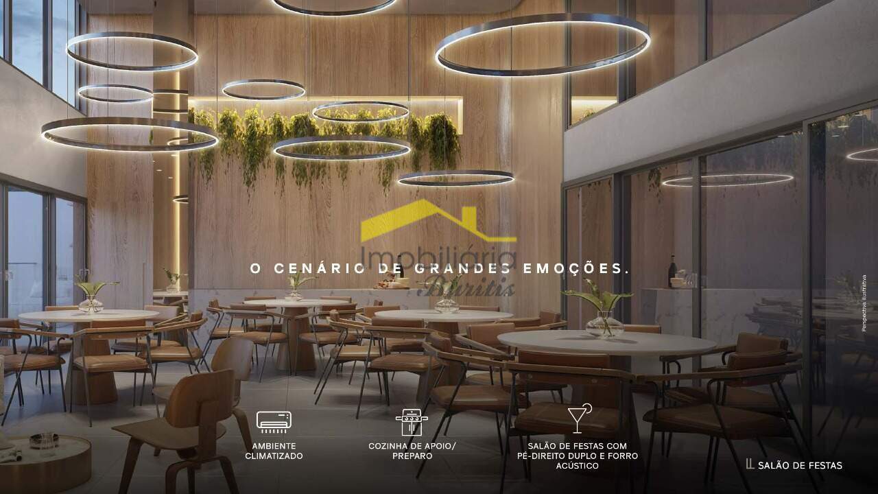 * Salão de festas climatizado com pé-direito duplo e isolamento acústico