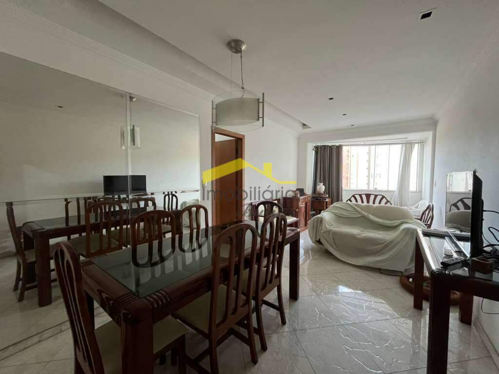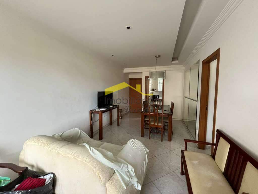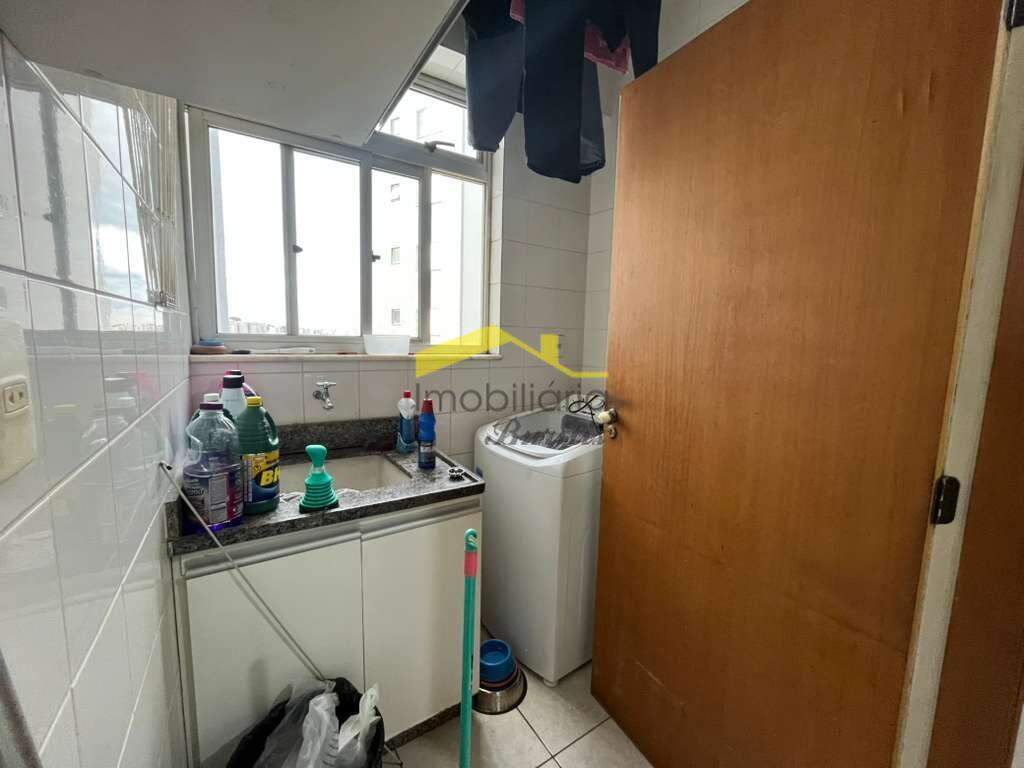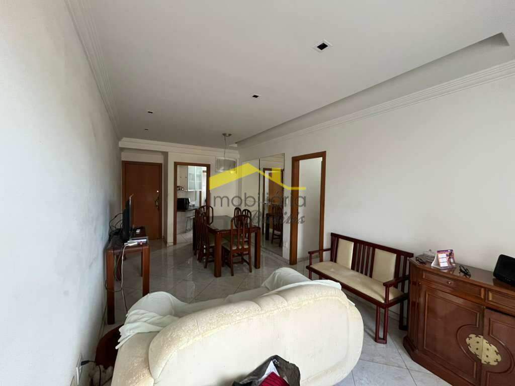 Internamente, o imóvel oferece uma sala ampla com piso em porcelanato e varanda integrada, três quartos com armários planejados, sendo uma suíte, e piso laminado. A cozinha também vem com armários planejados, e a área de serviço possui banheiro. Teto rebaixado e iluminação planejada completam o ambiente, garantindo modernidade e conforto.