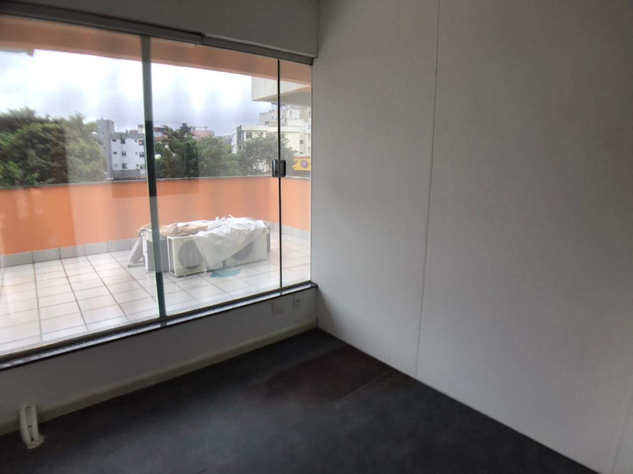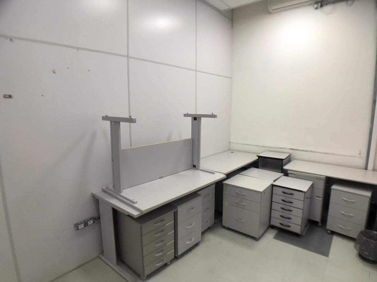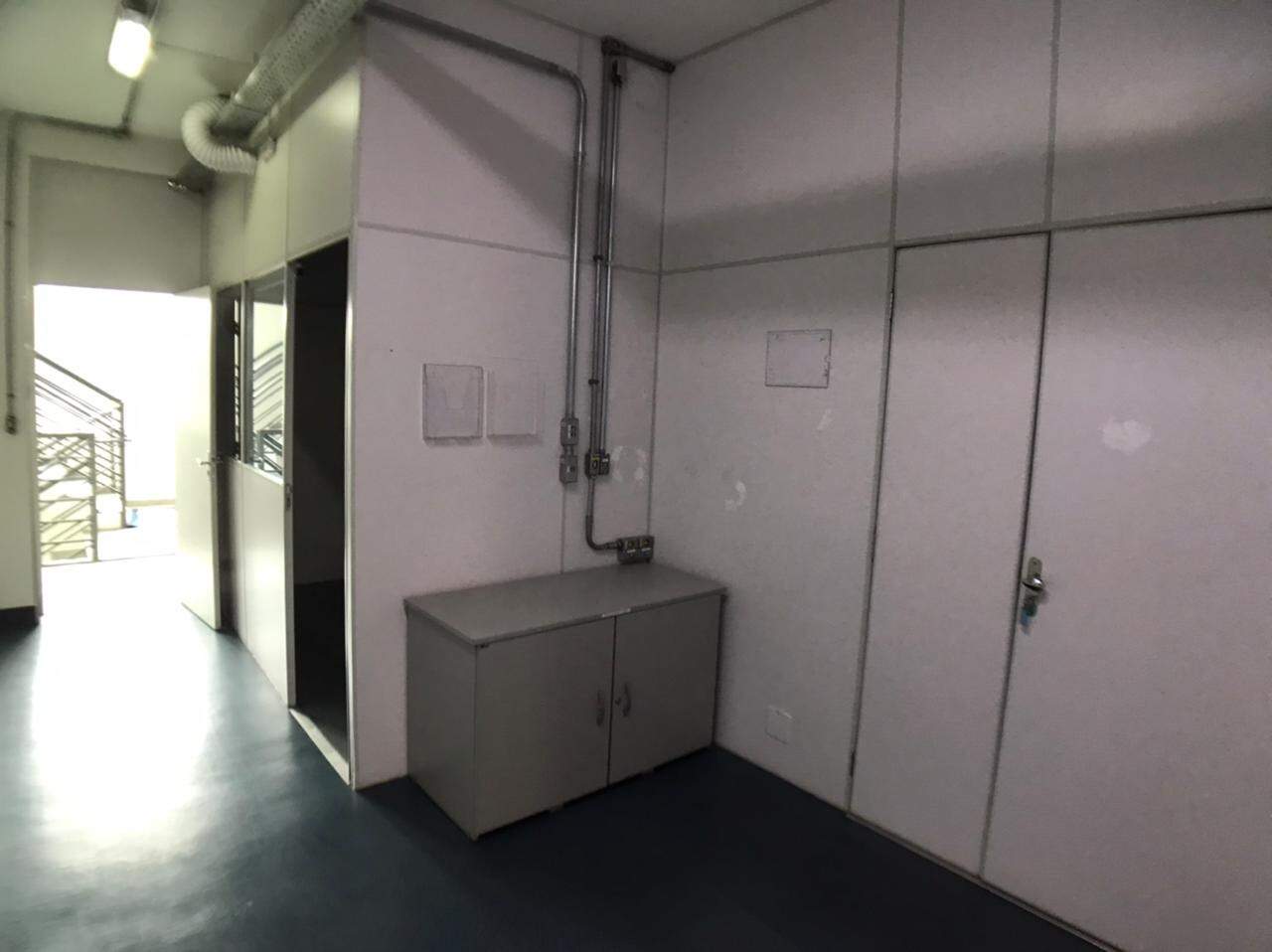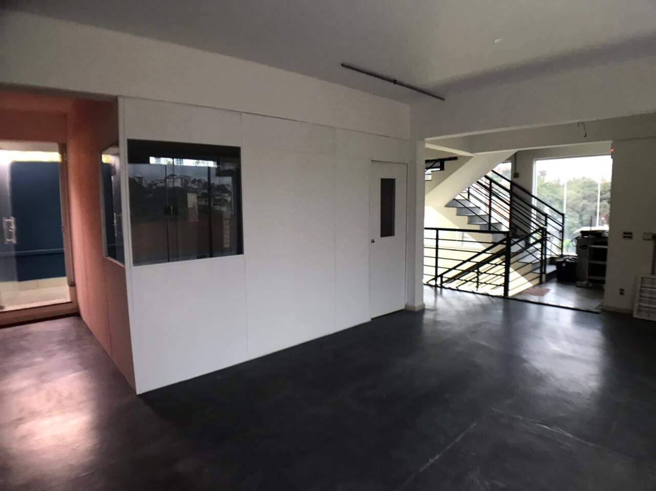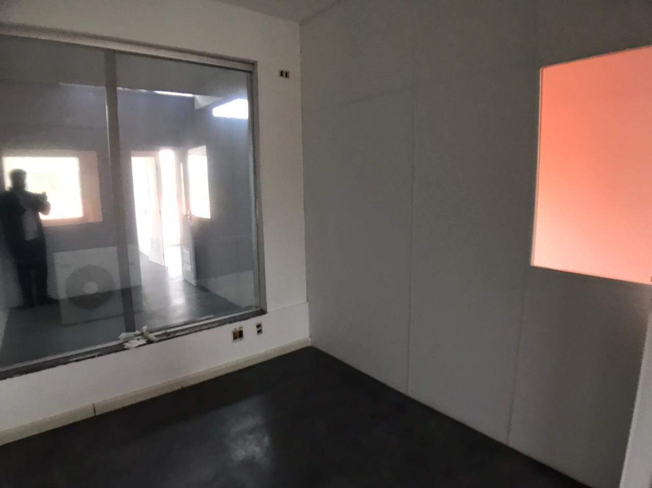 Prédio comercial, com elevador, salas com repartimentos, mesas e cadeiras de escritório, salas de reunião, ar-condicionado.