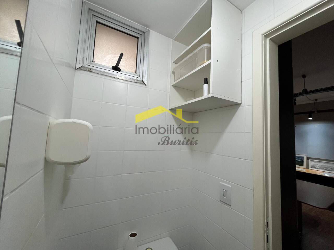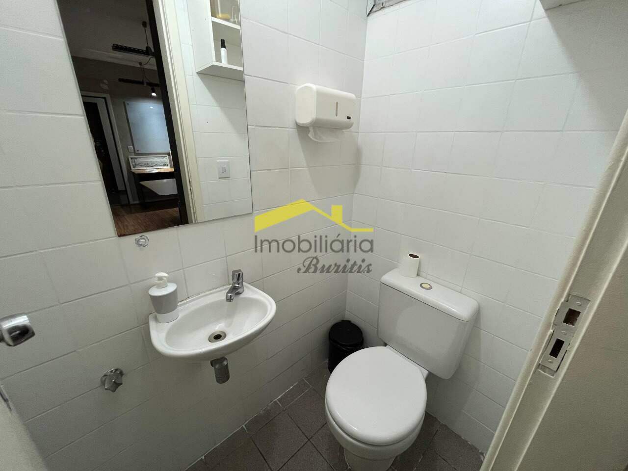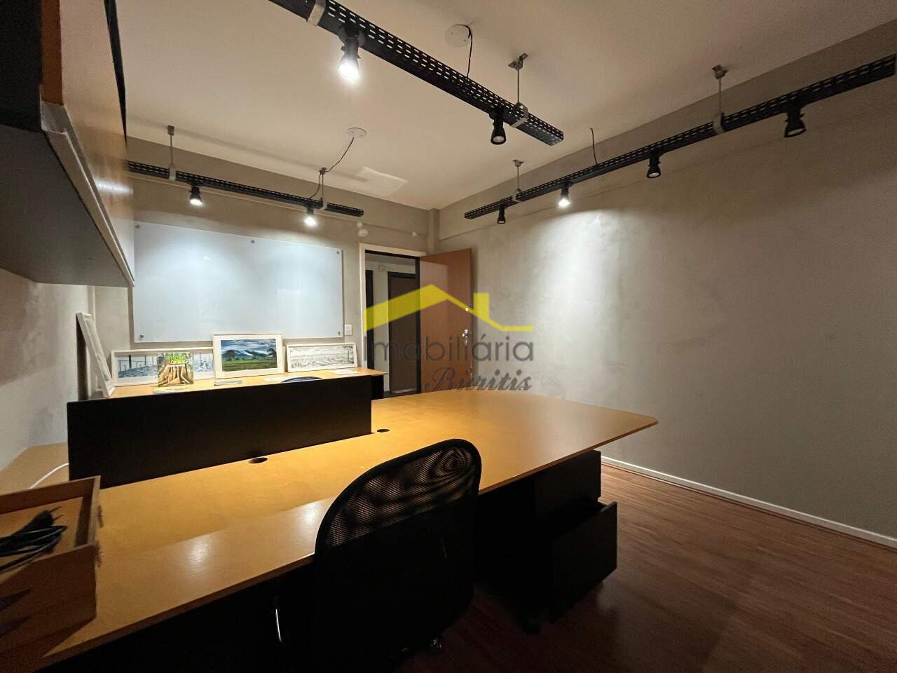 A sala conta com piso laminado, ar condicionado, banheiro privativo e luminárias já instaladas, garantindo conforto e funcionalidade.